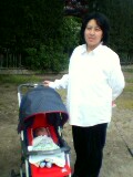 Kaika's eyes and ears are still at an early stage of development, everything fuzzy (at least that is what most will say -- we of course don't know for certain). But every once in a while there are flashes of recognition that startle. Moments before I took this picture, Naoko was saying "Papa" to Kaika, and there were ever so subtle murmurings of recognition from Kaika, he making little sighing noises. Now mind you it could have just been a coincidence, but....