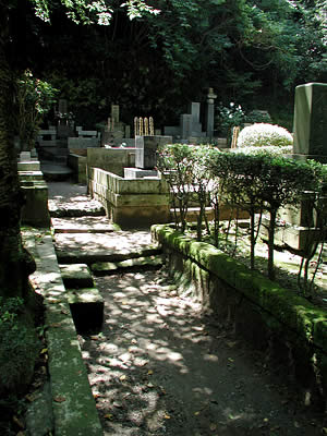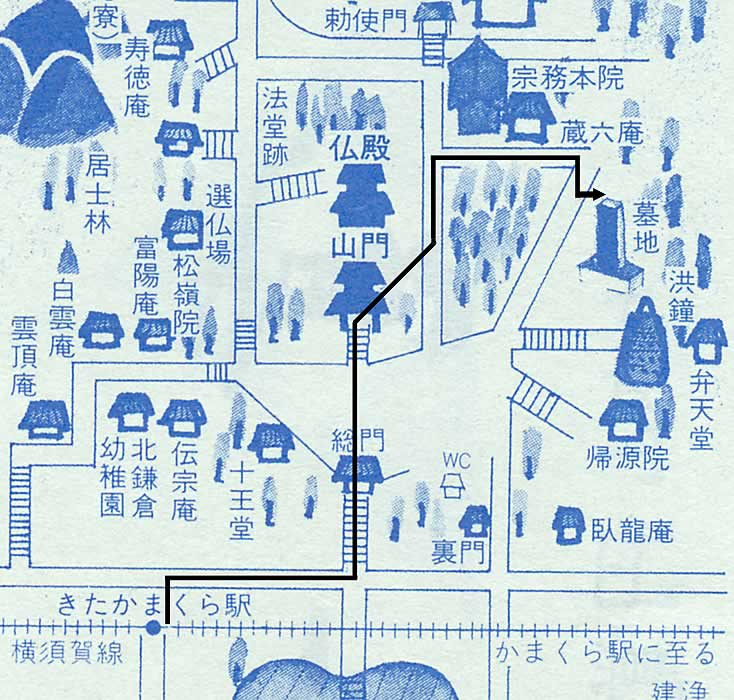 If my instructions haven't been clear, or you'd just like peace of mind, you can click on the above map which will take you to a detailed (and printable) view, upon which I've drawn the path you should take to find the graveyard. You'll still need to find Ozu's grave in that graveyard, but the on-site map at the entrance to the graveyard should help you with that. |