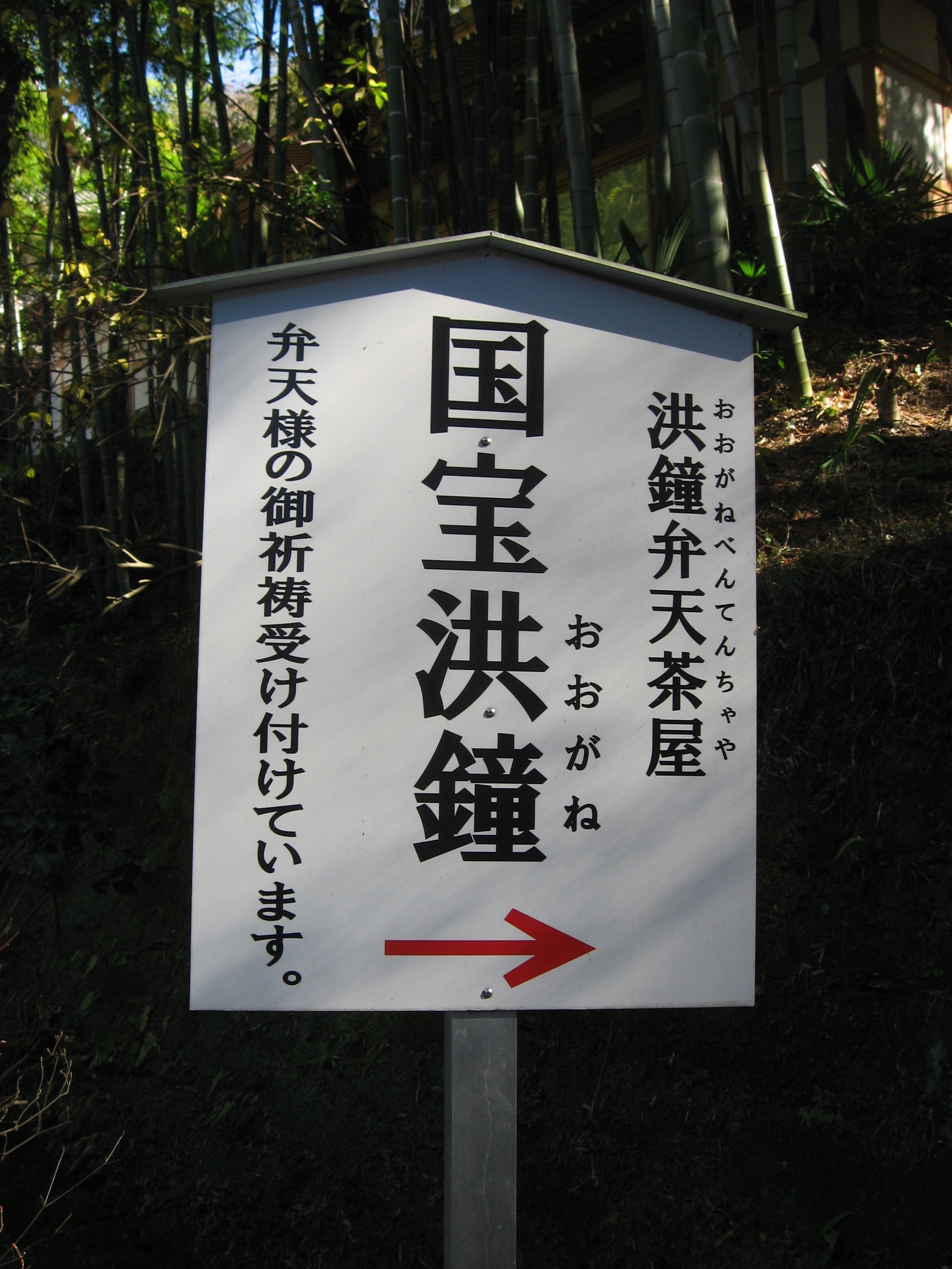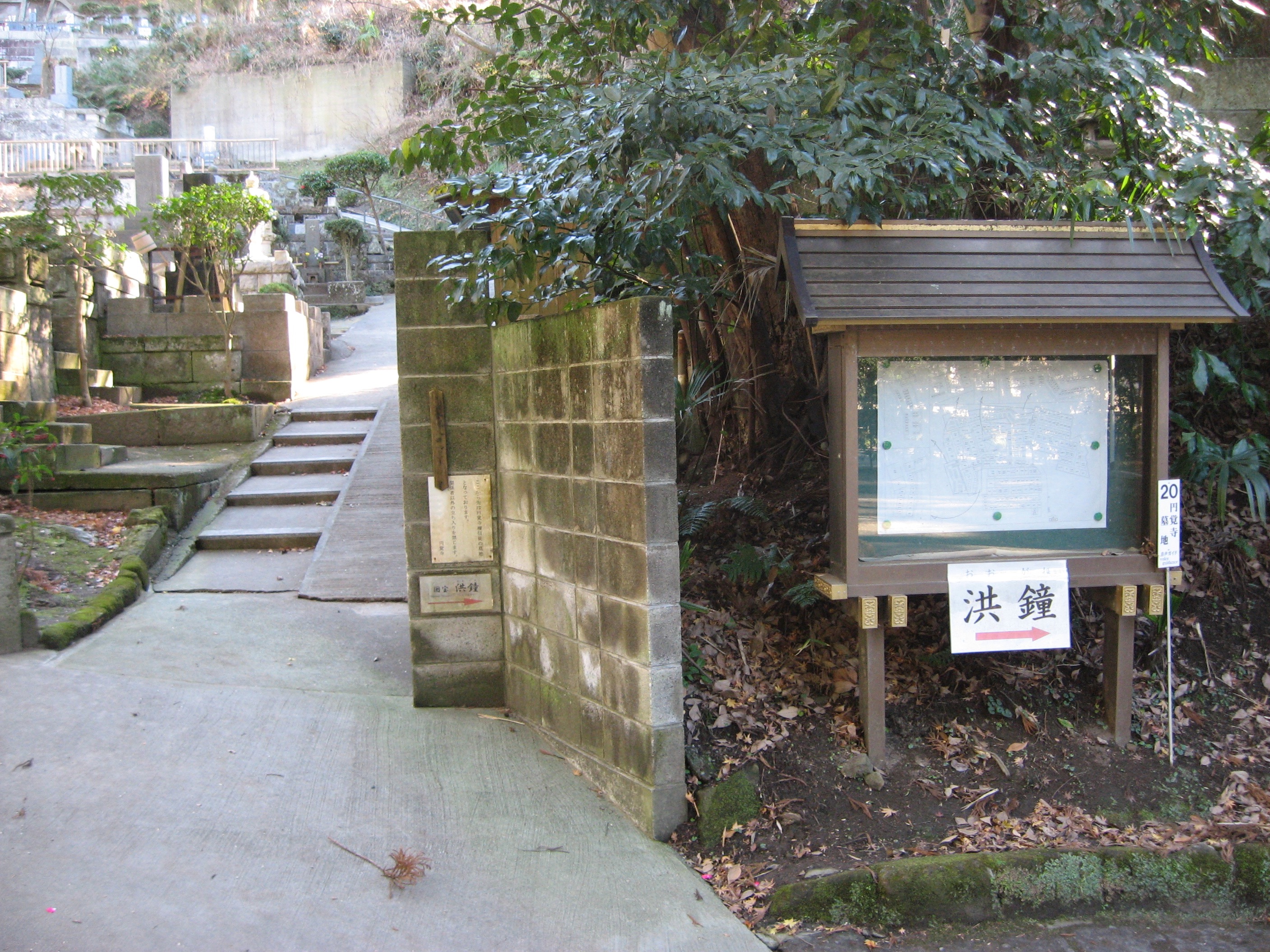 Across from this temple on the right side of the walkway you will see a pathway leading to Oogane (洪鐘), as shown here: |