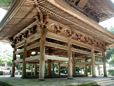 At the top of these stairs, you will come to Sanmon (山門). You will want to walk around to the right of this imposing gate. |