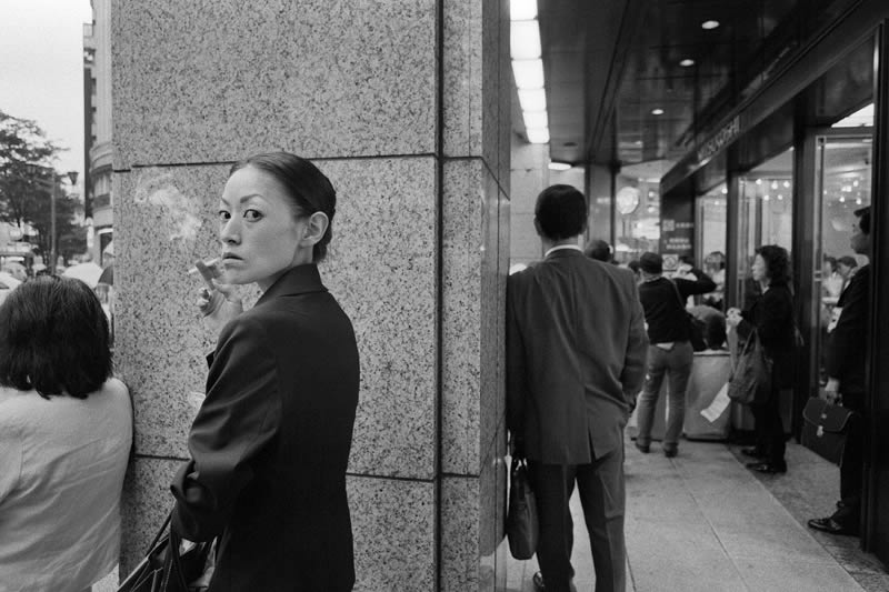 | Ginza, Tokyo. June 11, 2004. Bessa L, CV 21mm f/4 Color-Skopar. Fuji Neopan 1600. |